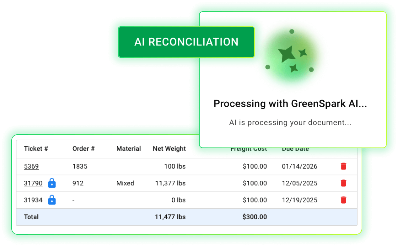 Matches BOLs, scale weights, settlements, and freight invoices continuously.